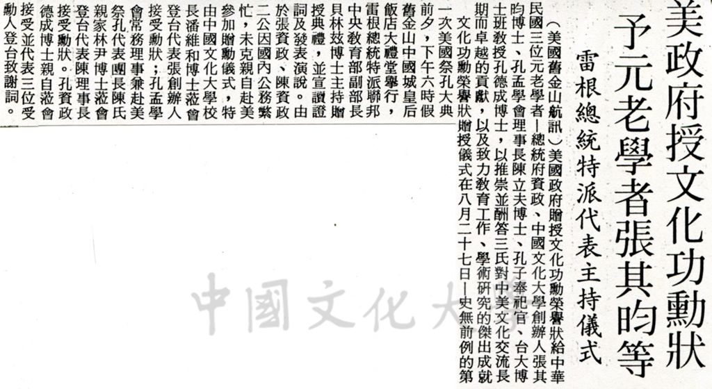 • 美政府授文化功勳狀予元老學者張其昀等的圖檔,第1張,共1張