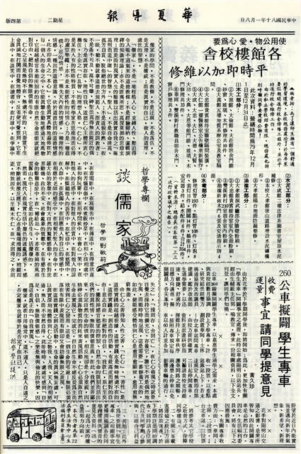 給予安公子自新機會 立法院通高過自首者免其刑責提案,功勛子女減免學雜費 今起領款,綠化標誌設計攝影比賽即日起收件,寒假住宿者今日登記,奬學金消息,考勤統計表 有誤者速更正,本週五電影 放映滾滾紅塵,社團會議,本學期芬資奬學金獲 奬者辦理領款手續,千頭萬緒談「機器戰警Ⅱ」,榮譽榜,記翡翠水庫之旅,台灣大傳事業發展座談 十九日前歡迎索取入場券,事實勝於雄辯,夜間部79年度冬令義賣所得明細表,北京亞運攝影精品展,台灣開發史蹟展即日起在國父館擧行,使用公物˙愛心為要 各館樓校舍 平時即加以維修,談儒家,260公車擬闢學生專車 收費運量事宜請同學提意見