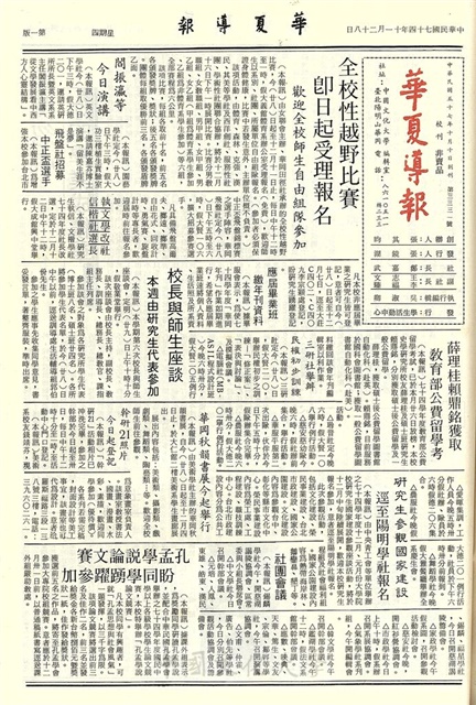 全校性越野比賽即日起受理報名歡迎全校師生自由組隊參加,閻振瀛等今日演講,飛盤社招募中正盃選手,執信文楷學社改選社長,應屆畢業班繳年刊資料,校長與師生座談本週由研究生代表參加,薛理桂賴鼎銘獲取教育部公費留學考,三研社舉辦民權初步訓練,幹研21照片今日起登記,社團會議,華岡秋韻書展今起舉行,研究生參觀國家建設逕至陽明學社報名,孔孟學說論文盼同學踴躍參加,切莫忽視你的學業成績單,電影介紹 狠將奇兵,植物之旅(三)浮華世界的雅士-- 菊花--,心理書櫥 探索自我