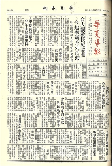 俞大綱教授紀念週 今起舉辦系列活動,工學院週開幕式 今午由殷富主持,外銷商品展出三天,助貸退費 即日領取,室內樂,歡迎品嘗茶宴暨壺展,李殿魁談詩詞世界,暑期工讀領報名表,植物系展覽今假大義館舉行,林財丁主持論文發表會,電機週系列活動 包括展覽及競賽,土風舞社華爾滋之夜,攝影成績揭曉並展出,紫微斗數,電腦擇友今公布結果,國貿商務系列報導之四,校長與師生座談會 紀錄整理綜合披露,樂府詞的復興者,第三屆華岡文學獎,迎向陽明之春