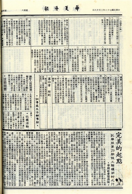 農學院盃各項競賽今明兩日展開角逐,大夏康樂人員研習即起報名,圖書館年度經費有餘請師生提供好書名單,本校三民主義研究社獲全國大專績優社團,中國武俠電影展下週一陸續上演,今日演講,大夏花藝展今晚推出,系際羽球賽今日抽籤,造園學社舉辦美工研習營,全校性徵友活動即日起受理報名,本校學生獎懲規則草案歡迎師生提供意見,攝影人員研習營報名至今日截止,完美的起點