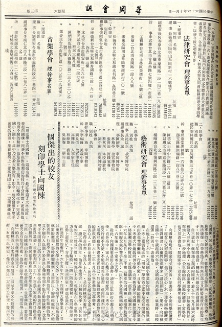 新版校友名籍總錄 有待校友提供資料,本校啟用最新電腦系統,習平洋為校爭光,華岡博物館韓國民俗版畫展,高雄校友會召開大會,日本分會將發起支援母校運動,香港校友會幹事通訊地址,潘院長訪問歐美 受各界熱烈歡迎,蘇順國 提名高雄縣省議員候選人,黃春旗 提名雲林縣議員候選人,請繳新任理幹事名單,法律研究會 理幹事名單,音樂學會 理幹事名單,藝術研究會 理幹事名單,一個傑出的校友 刻印學士向國棟,校友動態,希望您注意