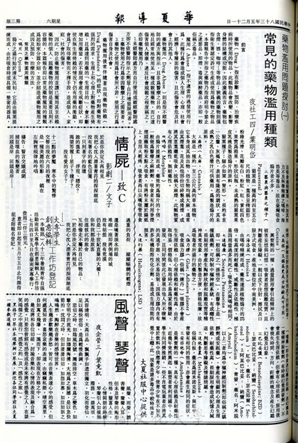 陳文章等三位督學19日蒞校訪視,林校長報告校務發展成果,盼教部能提高對私校的補助,華岡盃網球賽儘速報名,觀光系友會明日舉行,迎曦文藝營已開始招生,學院院長提出多項建議,督學將向教育部反映,成長與關懷,內外家拳的特色,今生無悔,藥物濫用問題探討(一),情屍 - 致C,大專學生創意編輯工作坊登記,風聲 琴聲,學生議會秘書處介紹,蘭陽特產小吃介紹