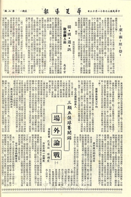 體育系許明發等六人為國為校爭光榮創辦人明令表揚,配合大專寒訓期末考將提前,財稅組獎學金已於前日頒發,本校田徑對抗賽團體名次業揭曉,死信退回太多請註詳明地址,為馬鴻逵夫人祝壽戲專演「八仙獻壽」,本校四同學獲得周凌維娜獎學金,加強維護學校增聘二十榮民,圖書館喬遷完畢明起繼續開放,加開小型專車便於職員乘坐,觀賞電影請勿佔位,簡訊,來函照登,韓國通訊致創辦人函,三類五強球賽開鑼–場外論戰(一)
