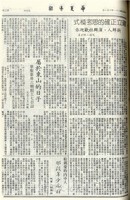 教職員汽車停車證,大陸三學者,各項集會司儀,張董事長 傅校長接見,校友歌唱聯誼會,家政便當 今日起調價,細說 通話卡,生命、音樂、愛,我的嗜好,建立正確的思考模式,屬於東山的日子,給親愛的內中人,勞工專欄,《耕雲的筆》,鄴城的故事