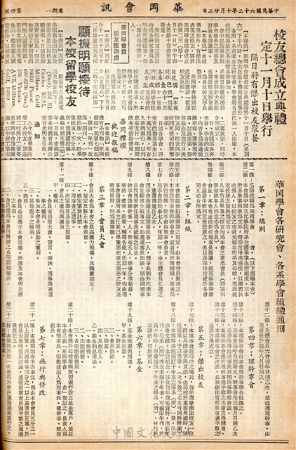 共同系慶日節目多歡迎校友聯袂返校,配合建校計畫 城區部將擴展,碩士學位證書 教部已發到校,新鮮人踏入華岡 華岡處處是新鮮,碩士學位證書教部已發到校,師長動態,美國海上學府師生參觀本校印象深刻‧留連忘返,海上學府贈本校全額獎學金兩名,本校師生訪問宇宙學府受到熱烈歡迎,外籍師生茶會,校閱點滴,接受十大傑出青年頒獎演講詞,許文章被澤殘童,校友消息,校友總會成立典禮定十一月十日舉行隔日將有傑出校友聚餐,華岡學會設校友服務處,顧振銘院接待本校留學校友,華岡體壇歡迎投稿,華岡學會各研究會,各系學會組織通則