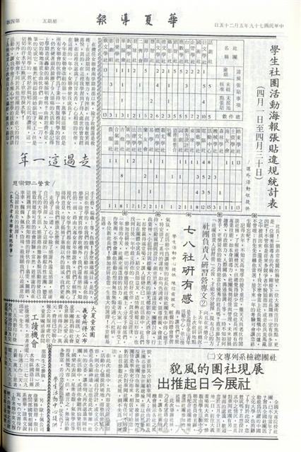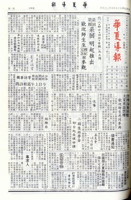 以「人.都市.自然.景觀」為主題,夜間部社團班級速繳幹部名冊,參加外交部座談卅日前報名,學生活動中心、語文中心電影時間、企管、孟俠學社今日影片欣賞 ,教孝月有獎徵答得獎者名單揭曉,禁煙海報展覽 大家來說禁煙歡迎 師生共同參與,日本正則學園高等學校等訪華團今日上午蒞校訪問,園藝系展購書者於廿九日前至系圖領書,嘉友會烤肉聯誼,二項獎助學金即日起受理申請,出版部大夏服務站撤離 ,跆拳道社舉行晉級檢定,刑事法系列專文(3) 偽造有價證券罪股票風波,詩詞曲賞析106 詞之旅 多淒涼意周公謹,把企管的愛找回來,畜牧系展,中醫社送舊專文.中醫學基礎(二),同濟社電影義演影片介紹 飛進未來,影二班展 熱鐵皮屋頂上的貓,新潮電影週專文(2) 西德.第三世界電影,學生社團活動海報張貼違規統計表,社團負責人研習專文(2) 七八社研有感,大夏童軍團義賣所得公布,社團總檢系列專文(二) 展現社團的風貌 ,走過這一年