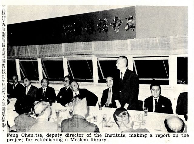 Feng Chen-tse, deputy director of the Institute, making a report on the project for establishing a Moslem library.