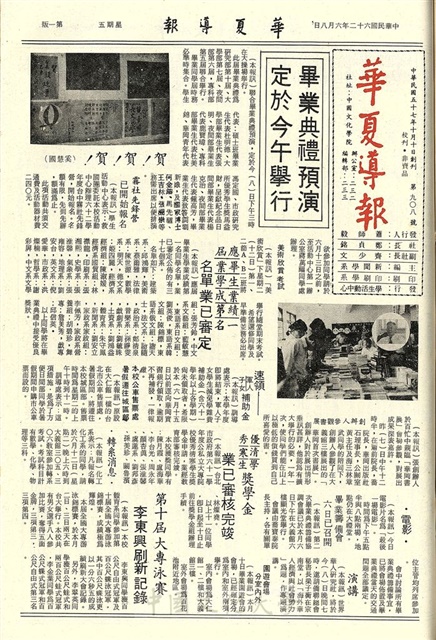 畢業典禮預演定於今午舉行,霧社先鋒營已開始報名,第十屆大專泳賽 李東興刷新紀錄,美術欣賞考試,應屆畢業生學業成績第一名,速領軍人子女補助金,本校公車售票處暑假遷往城區部,畢業籌備會六日已召開,演講,優秀清寒學生獎學金業已審核完竣,園遊會場分室內外,轉系消息,本校畢業典禮十日上午舉行,藝術館的巡禮