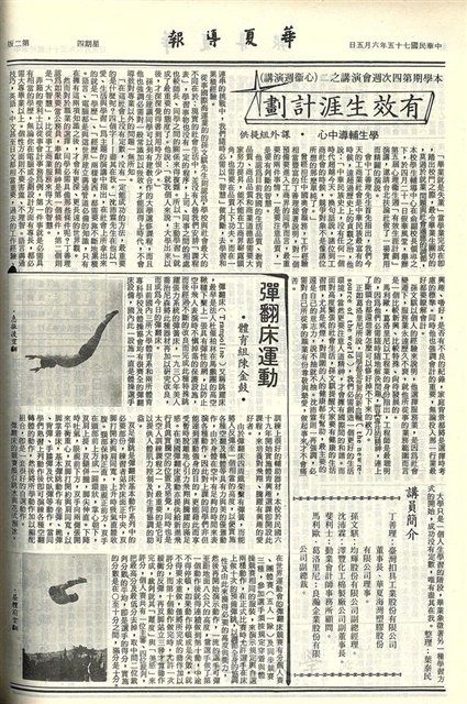 社團負責人研習會自本月七日起報名,僑生獎助金獲頒者蓋印,印刷之夜今晚舉行,獎學金消息,華岡實習銀行設有 張其昀紀念館專戶,研究生役男緩徵儘速登記,教學研究發展中心今日研討會 延期,暑假住校今起申請,外研社送舊歡迎索取入場卷,綜合性社團明日舉行會報,畢業典禮當天備有教職員交通車,中山文藝獎月底前申請,繡球花歡迎訂購,有效生涯計劃,彈翻床運動