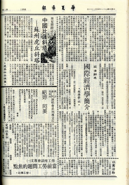 第2次師生座談會今日假敬業堂舉行,今日演講,玫瑰傳情活動28日起預售,華岡交響樂團今晚演出,球類競賽,土資系徵研習營輔導員,第4次畢業班代表會議週五假敬業堂召開,食營電機轉系考試應試者請攜帶學生證,大馬文物展5月1日推出,79年度預官考選照相今明拍攝系組公布,國際經濟學簡介,中國比薩斜塔蘇州虎丘斜塔,給妳阿美,當前勞工問題的焦點,孝道的時代精神,票選10大台北市政新聞,親子之溝不在通,熱血的交流,以包容關懷與感謝的心充分運用校園溝通管道建設及改善學習環境,校內餐廳第2次衛生檢查增加測試大腸桿菌,收集資料的重要性