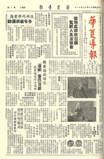 教務處即將召開監試人員座談會,社團聯席會議前日圓滿結束,夜部同學響應冬令救濟運動,發行儲蓄劵 購者甚踴躍,華岡學會將辦返鄉遊覽車團,圖書館新購進道藏書四百冊,同學寒假期間仍可購公車票,預官考選體檢不合同學 請速辦理複檢,舞蹈觀摩會今下午舉行,田曼詩赴韓參加藝術教育會,華岡合作社已遷大恩館,足球校隊作表演賽,贈送榮民彩色電視儀式,大專籃球聯賽,華岡居難