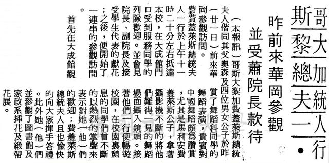 哥斯大黎加費蓋萊斯總統夫人偕同其父奧森及四位男女公子於民62年5月22日蒞臨本校觀訪問。