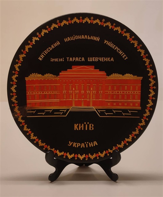 2000年5月23日烏克蘭基輔大學(Kyiv Taras Shevchenko University)致贈木製拚貼校景紀念盤