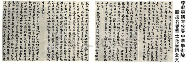 XFN0244-1 李範奭將軍接受中華學術院贈授名譽哲士致答詞全文(上半部)