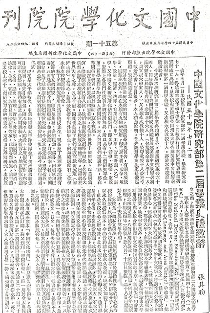 此篇為張其昀先生於1965年7月2日中國文化學院研究所第二屆畢業典禮上致辭內容。