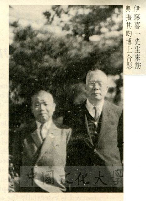 日本永平寺代表伊藤喜一先生來訪與張其昀博士合影。