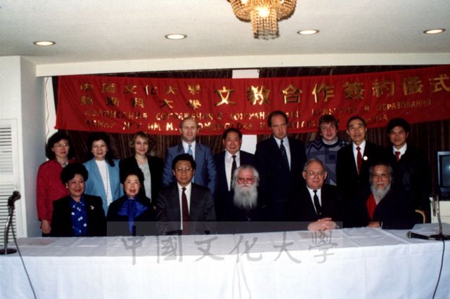 中國文化大學與莫斯科大學文教合作簽約儀式。(張鏡湖董事長與莫斯科大學代表合影)