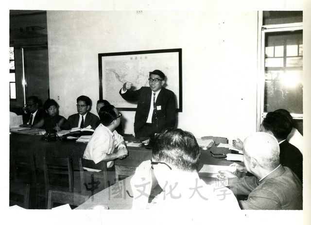 8月27日及8月29日為第一屆國際華學會議專題分組討論時程,假陽明山莊梨洲樓舉行,圖為8月29日下午三時文學組於陽明山莊梨洲樓第一研究室專題討論景況,立者發言學者前為日籍學者平野顯照。