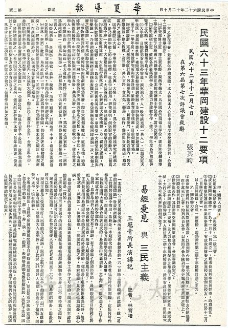 此篇為張其昀先生於1973年12月7日在中國文化學院第六屆第七次評議會上致辭內容。