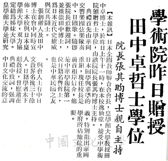 XFN0227-2 學術院贈授田中卓哲士學位,院長張其昀博士親自主持。