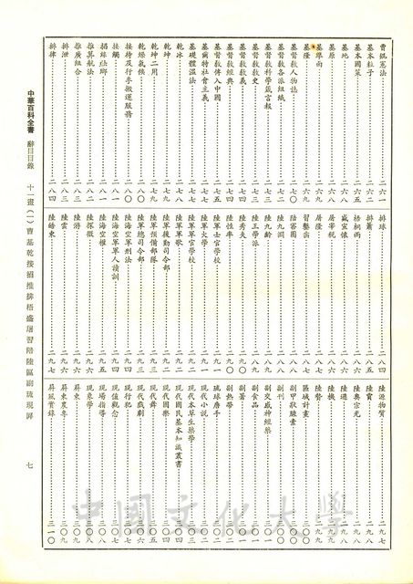 《中華百科全書》為國內第一套中文百科全書,總計十冊。自民國七十年(西元1981年)三月開始陸續出版,至民國七十二年(西元1983年)七月完成,全書共分為三十八種類別,各款目採辭典形式綜合編排,辭目約一萬五千餘條。是由中國文化大學創辦人-張其昀先生,為展現大學為「網羅百家、囊括大典」之機構,組成委員會倡導編纂。