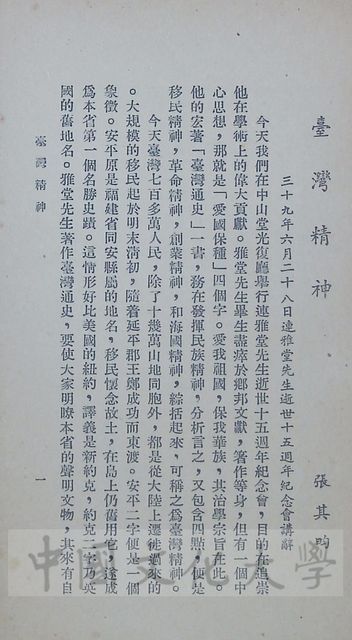 1950年6月28日連雅堂先生逝世十五週年紀念會講辭內容