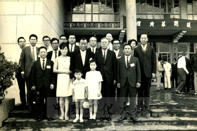 中華學術院院長張其昀先生與第一屆國際華學會議與會代表於中國文化學院大成館前合影(二排右二為創辦人張其昀,中為李瑄根)