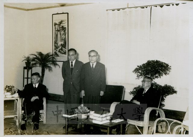 日本岡山大學木下彪教授於1961(民國50)年1月應邀訪華,其行程以參觀我國之政戰人才培訓機構及國防建設的情況為主,其於1月10日蒞臨國防研究院參訪。國防研究院並邀請羅時實、吳士選、周彥龍會見木下先生。木下彪教授亦將此次訪華行程的感想寫成數封信件寄給內藤教授,而木下彪所寫之第四封信件被劉焜輝先生譯為中文,並刊載於研究通訊第十九期,信中述及對我國國防研究院的看法及對國防研究院主任張其昀的敬仰。圖為歡迎會場合影景況。(右一)張其昀主任、(右二)木下彪教授。