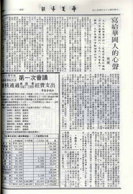 維護校園安寧與秩序 駕駛轎車之師生請依規停車並關閉警報器,英語演講賽今日報名,法政盃辯論賽本校榮獲季軍,草莓與楊桃歡迎觀賞,大專青年短劇競賽本校勇奪特別獎,教部遴選文化參事意者速報名,大義球場夜間照明使用時間至九點,俄國文物展今日推出,俄文週今舉辦專題演講,領書通知,紀念創辦人路跑報名延至十四日止,電影社今晚電影欣賞 ,各館宿舎熱水鍋爐 加強保養,體育園地 大家一起來運動,校友週專文 山水蘭陽,企管系信封信紙設計徵文比賽即日起至廿六日收件,家政學系今日演講,B型肝炎檢驗明日進行,橋藝天地 橋牌的基本叫牌,超越自己追求卓越 企管週專文(6) ,社長聯席會今日上午舉行,天文專欄 宇宙奇觀,寫給華岡人的心聲,七十八學年度畢業班學院代表第一次會議審核通過畢服會79年1﹑2月份經費支出
