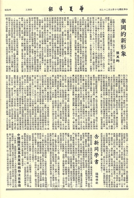 新生訓練今起分兩梯次舉行,潘校長主持開訓典禮邀請創辦人精神講話,防癆紀念票即日起發售,鄒容學社參觀活動,潘校長出席國際會議考察美洲司法,訪問海外校友參觀著名大學,七十學年度新生訓練課目表,認識華岡博物館,如何利用圖書館,七十學年度第一學期大學部選課辦法,國花頌,三民主義統一中國歌,課指組助教輔導社團分配表,華岡的新形象,告新同學書,中國國民黨黨員黨籍轉移注意事項