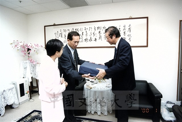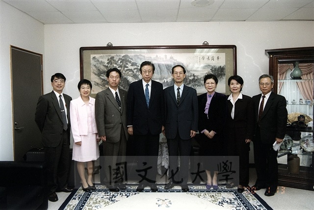 日本東京富士美術館館長野口滿成來台參加2000年1月12日「西洋名畫展」簽約儀式,於今日(13)赴本校參訪,董事長張鏡湖、校長林彩梅親自接待並陪同參觀校園。
