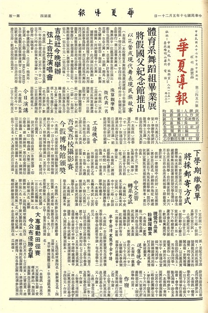 體育系舞蹈組畢業展將假國父紀念館推出,珠算觀摩賽徵代表一名,吉他社今晚舉辦弦上音符演唱會,今日演講,吾愛吾校攝影賽今假博物館頒獎,視覺作品展盼踴躍觀賞,廖重發清寒獎學金申請,大專運動田徑賽今公布優勝名單,應屆畢業同志黨籍轉移要項,首屆北區大專跆拳賽本校勇奪團體總冠軍,物理展解答雷射應用真空蒸鍍可制乾燥花,六十九學年度第二學期獎學金申請第九次公告,華岡一週大事
