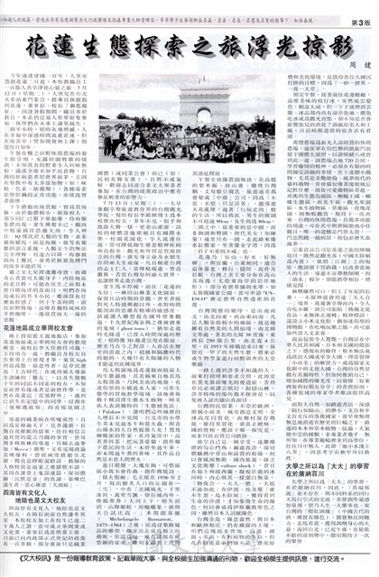 歡迎新鮮人圖書館設立24小時K館中心,陸生家長座談會肯定校方的全力支援,用創意贏5000元獎金,花蓮生態探索之旅浮光掠影,大學領導家 ,青春不可缺這一味社團聯合招新來囉!,華岡校歌,100學年度第1學期社團聯合招新攤位分配位置圖