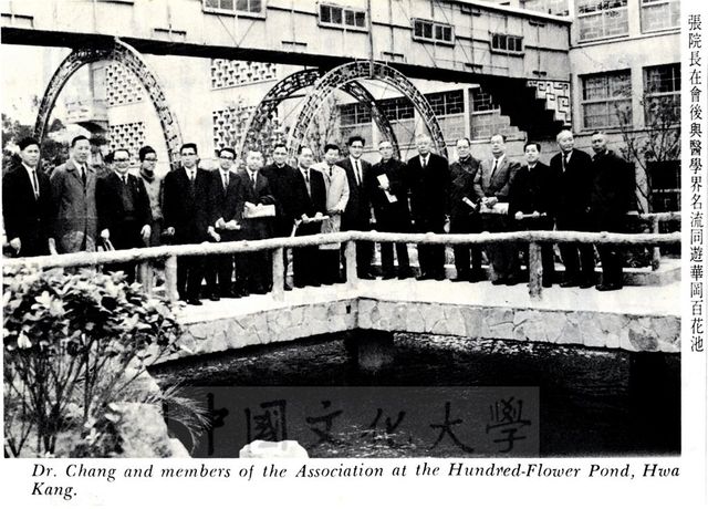 張院長在藥學研究所成立大會後與醫學界名流同遊華岡百花池。