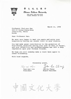 1998年3月11日董事長張鏡湖(Jen-hu Chang)、校長林彩梅(Tsai-mei Lin)致韓國大使韓哲洙(Chul-soo Han)函