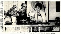 陳雄飛大使轉致台北外交部所贈銀牌獎詞予愛蘭娜女士
