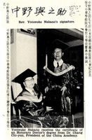 中華學術院贈授日本中野與之助先生名譽哲士及其簡介